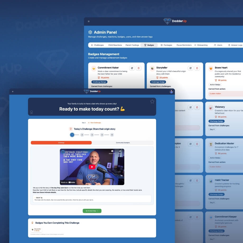 Unlock badges for milestones and streaks that mark your growth as a father.
